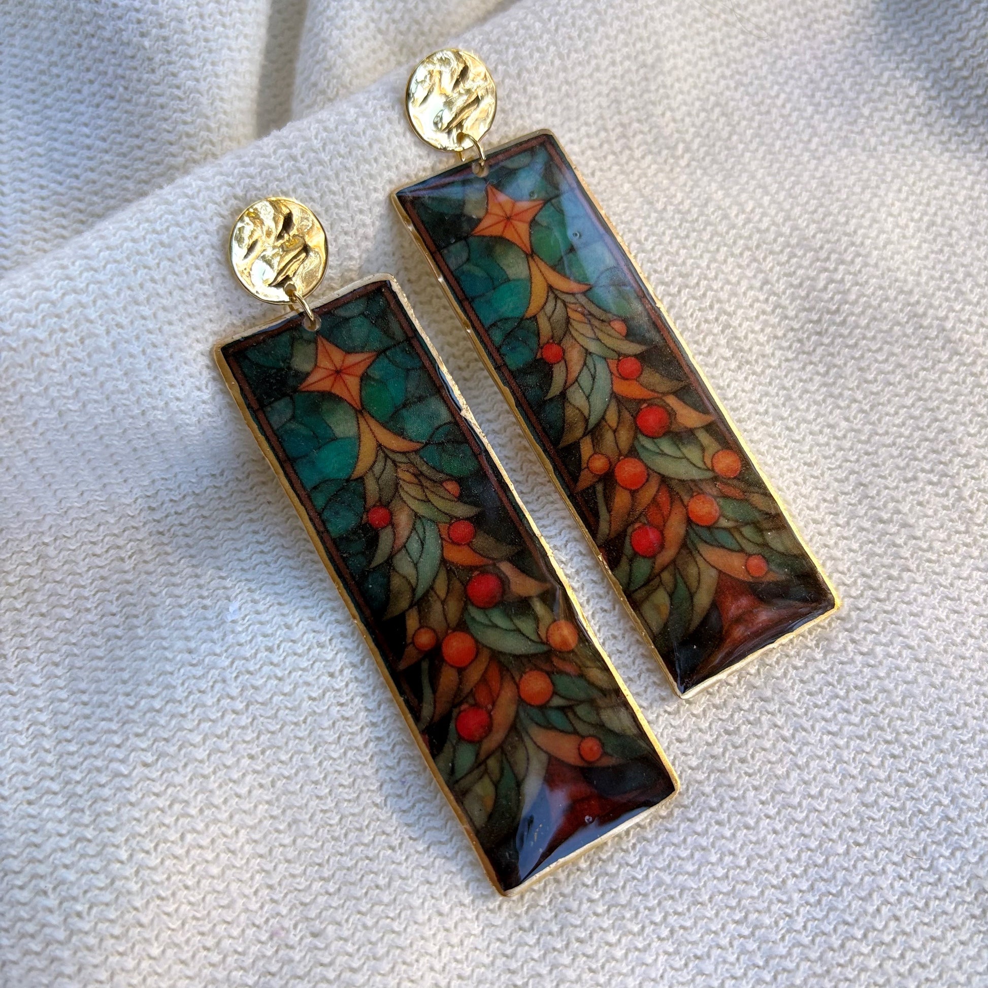 These cutesy 3” stained glass style Christmas trees are a fun way to add a little festive fun to your holiday wardrobe!